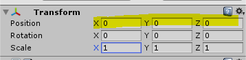5. Transform의 x,y,z좌표를 0으로 바꿔주기(0으로 설정하지 않으면 배경이 게임화면 밖으로 나가버릴 가능성이 있기 때문에 배경이 게임화면 상에서 제대로 보이지 않을 수 있다.)