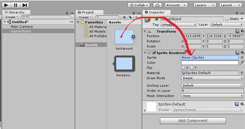 4. 배경이미지를 Spirte에 드래그앤드롭