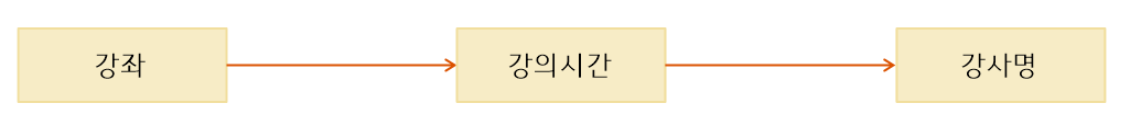 강좌를 알면 강의시간을 알고 강의시간을 알면 강사명을 알 수 있을 때 강좌를 알면 강사명을 유추할 수 있다는 것이 이행적 관계이다.
