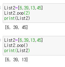 List2에서 인덱스 값이 2인 13을 제거했다.(리스트의 인덱스는 0부터 시작한다.)