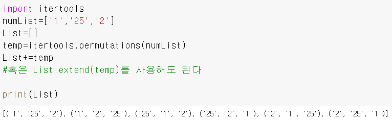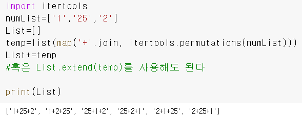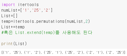 º itertools에서 제공하는 permutations(순열)을 이용해 각 원소의 순서를 고려하여 부분집합을 만들 수 있다.