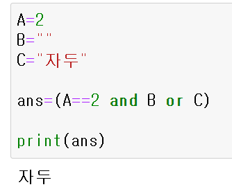 A가 2이지만, B가 빈 문자열이기 때문에 False로 인식하여 C를 ans에 넣게 된다. 즉, ans=C가 된다.