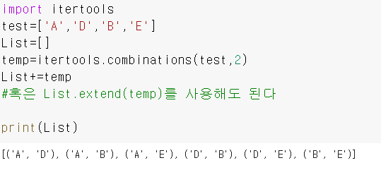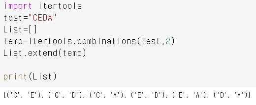 º 코드 = itertools.combination(조합을 만들 원소 , 원소의 개수)