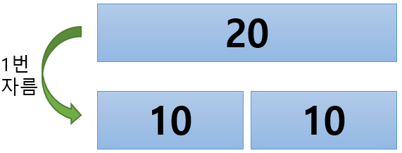 ▶ 10의 배수인 20인 경우, 1번 자르는 것으로 10 / 10 두 개의 롤케이크가 생기지만,