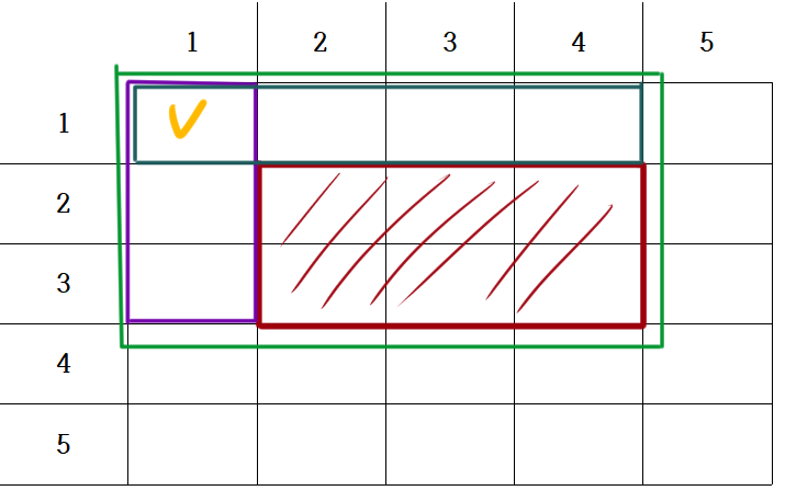 2) (1,1) 부터 모든 구간의 누적합이 있는 dp를 응용하여 특정 구간의 합을 구한다.