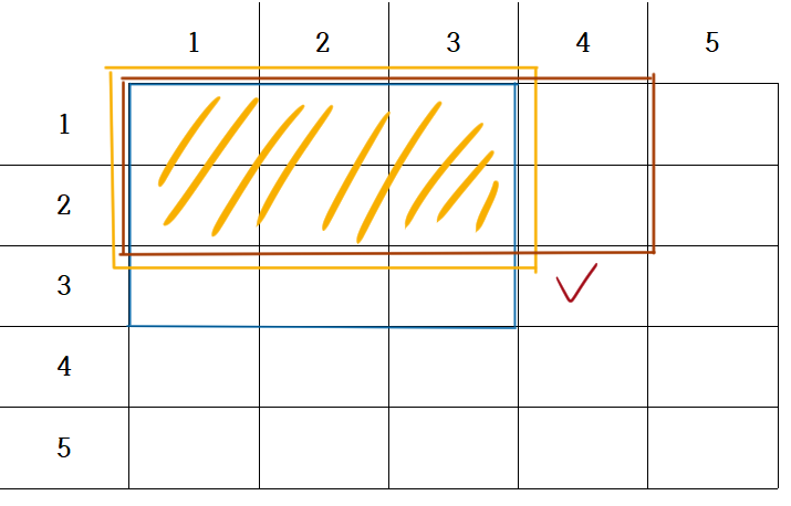 (2,2) ~ (3,4) 의 구간을 구하기 위해서는 (1,1) ~ (3,4) 까지의 구간합을 이용해야한다.