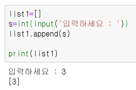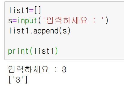 - s에 저장된 변수를 append를 써 list1에 넣는다