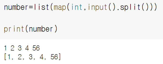 - 띄어쓰기로 구분된 여러개의 숫자 입력 값을 리스트에 넣을 경우에는 map을 이용한다.