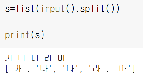 - 띄어쓰기로 구분된 여러 개 문자 입력 값을 리스트에 넣고 싶은 경우 list() 를 이용한다.