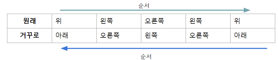 3. 이동 방향을 반대로 바꾼 쿼리를 거꾸로 탐색할 것이기 때문에, 거꾸로 뒤집어줍니다.