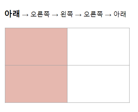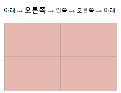 ▶ 쿼리문의 뱡향은 "↑ ← → ← ↑" 이며, 모든 쿼리문이 1칸씩 움직입니다.
