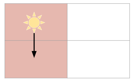 오른쪽에서 왼쪽으로 움직이면서, 오른쪽 영역(0,1 과 0,2)이 더는 필요없게 되었습니다. 그러므로 색칠을 하지 않습니다.