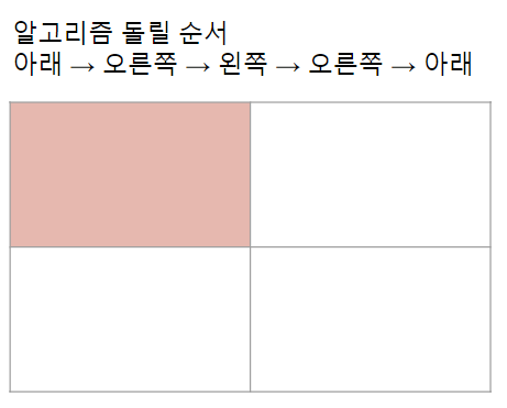 ▶ 2X2 의 격자가 주어지고 도착 좌표는 (0,0) 입니다.