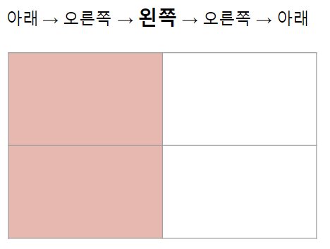▶ 쿼리문의 뱡향은 "↑ ← → ← ↑" 이며, 모든 쿼리문이 1칸씩 움직입니다.