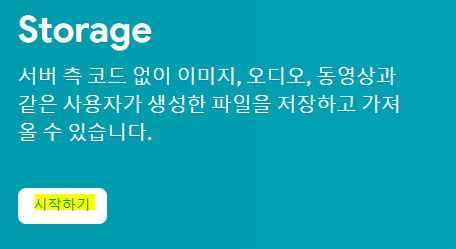 1) Firebase 프로젝트 클릭 → 왼쪽 메뉴 바의 Storage 클릭